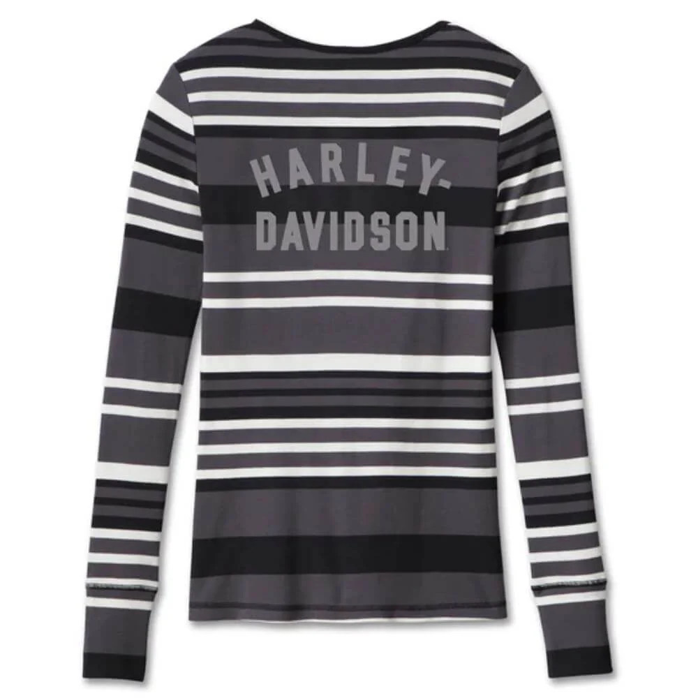 Verkkokauppa » Ajovarusteet » Harley-Davidson varusteet » NAISET » Pitkähihaiset paidat ja hupparit » HENLEY-KNIT,BLACK STRIPE