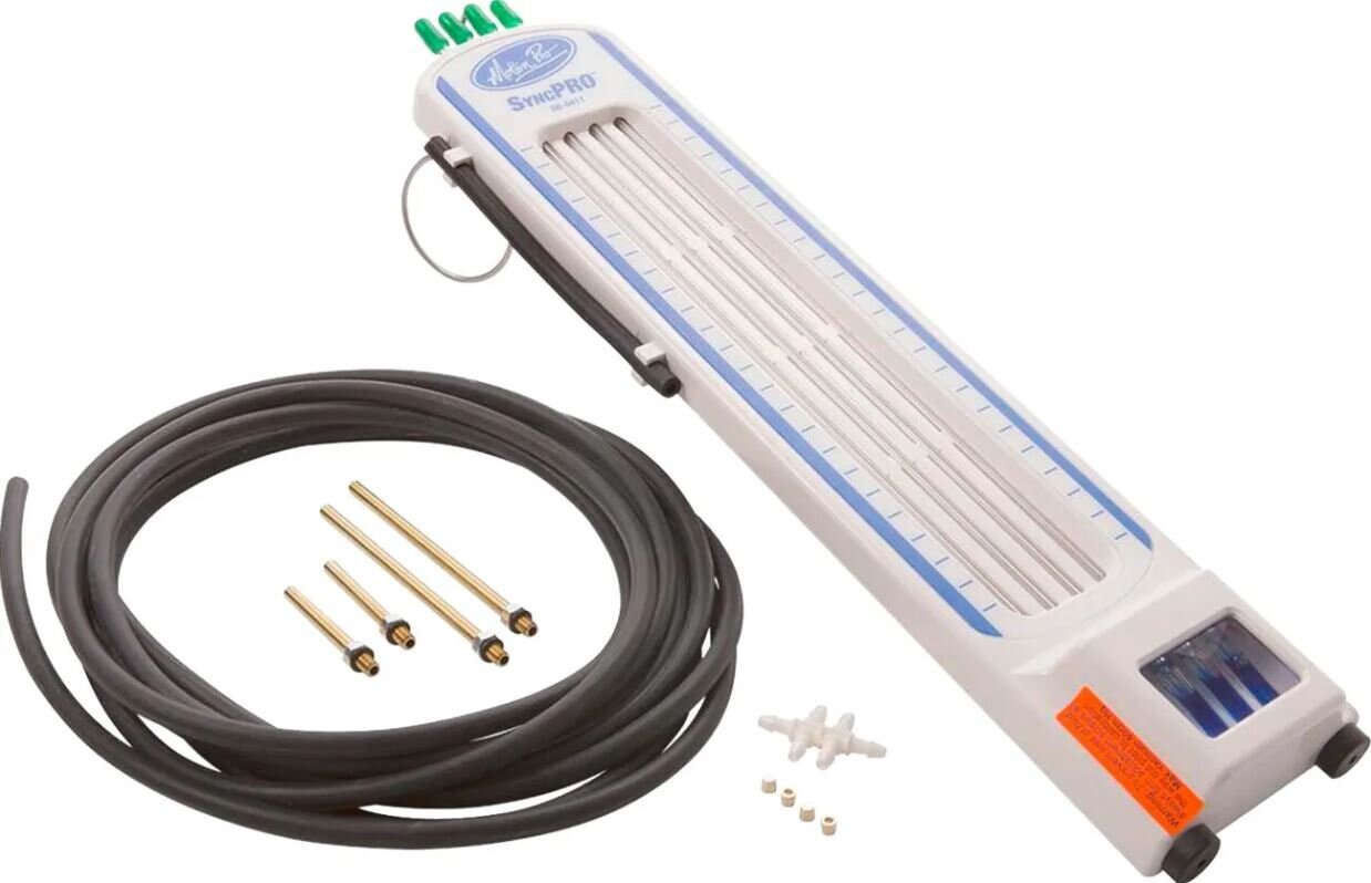 Tarkka nelikanavainen alipainemittari kaasuttimien ja läppärunkojen synkronointiin monisylinterisissä koneissa (maksimi suositeltu alipaine mittarille on 40cm Hg).